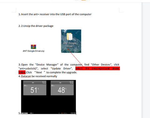 Connect to the computer, the required drivers will be installed, please connect this USB ANT + stick to the USB port and download the driver, after installing, automatically receive the data when the compatible fitness device is within range